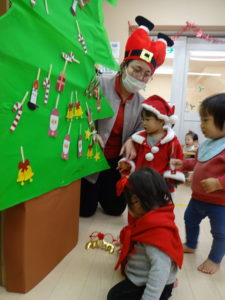 ツリーの飾りつけのお手伝いをしてくれました。