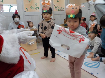 登園すると、サンタさんからプレゼントもらったことを教えてくれる子どもたち☆