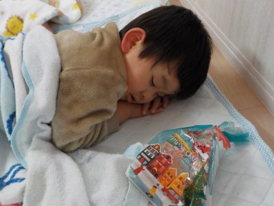 そら組さんには、お昼寝の時間にもサンタさんがやってきたようですよ・・・☆