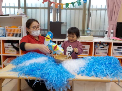 当日はお休みのお友だちが多く寂しかったので、それぞれペンギンさんを連れてくることにしました。