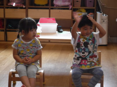 始めに皆で ♪いとまきまきの手遊びに合わせて