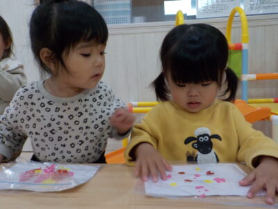あけましておめでとうございます。年が明けてからも子どもたちは元気いっぱい、お参りに行ったり製作をしたり園庭でたくさん遊んだりして過ごしています。