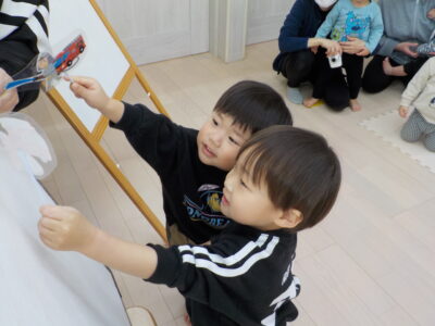 シルエットクイズではみんなが積極的に乗り物の名前を答えてくれました。