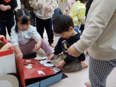 あけましておめでとうございます。年が明けてからも子どもたちは元気いっぱい、お参りに行ったり製作をしたり園庭でたくさん遊んだりして過ごしています。