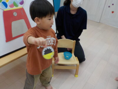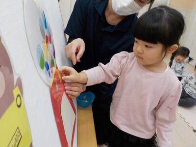 クマのおもちゃ屋さんがここしあ保育園にガチャガチャを持ってきてくれました。