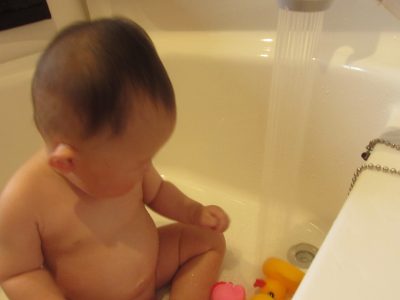 遊んだ後は、汗を流します。さあ、沐浴タイムです。
