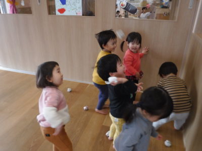 豆まきをして、豆も食べて、ここえみっこたちは今年も元気で過ごせそうですね。