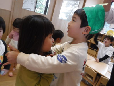 豆まきを楽しんだご家庭もあったようですが、保育園でも節分行事を行いました。