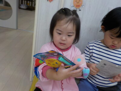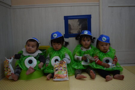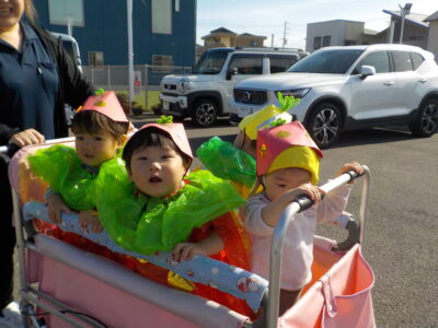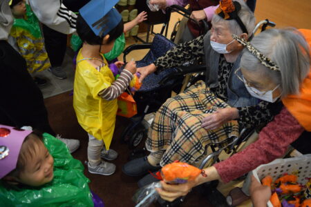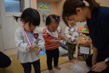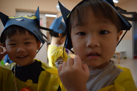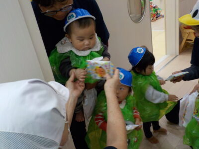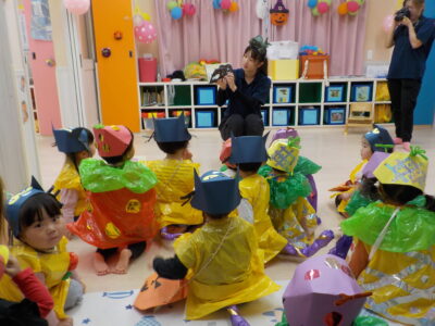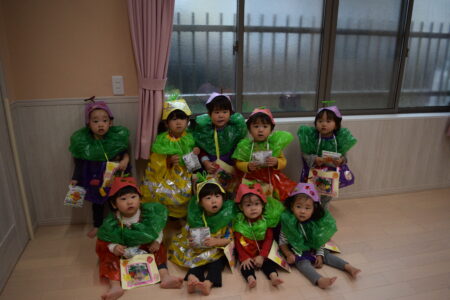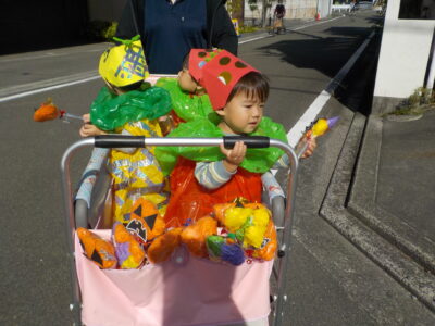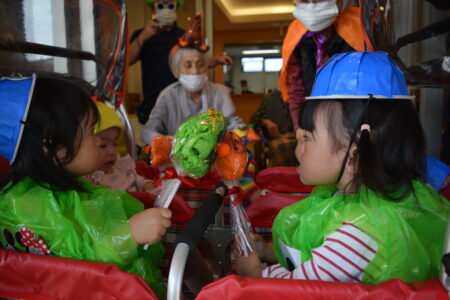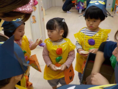ハロウィンの絵本を見たあと、お菓子をもらいに行きました。