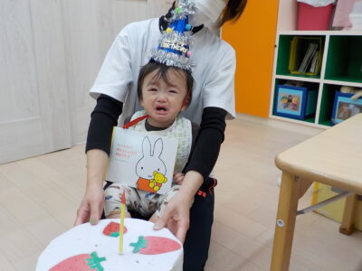 ハッピーバースデイの歌を歌ってお祝いをしました。