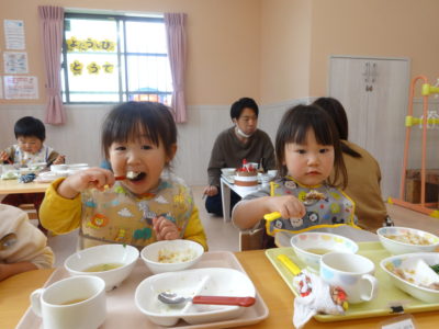 「おいしいね」と友だちと笑い合いながら、たくさん食べました。