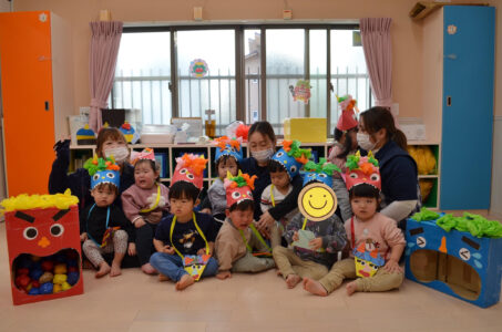今年の節分は2月2日でしたが、今日2月3日に保育園では豆まきをしました!