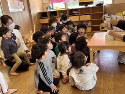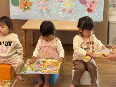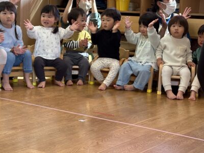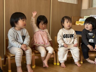 さあ、3月生まれのお友だち、名前を呼ぶよ!ほし組のYちゃんとIちゃん。上手にお返事出来たね!